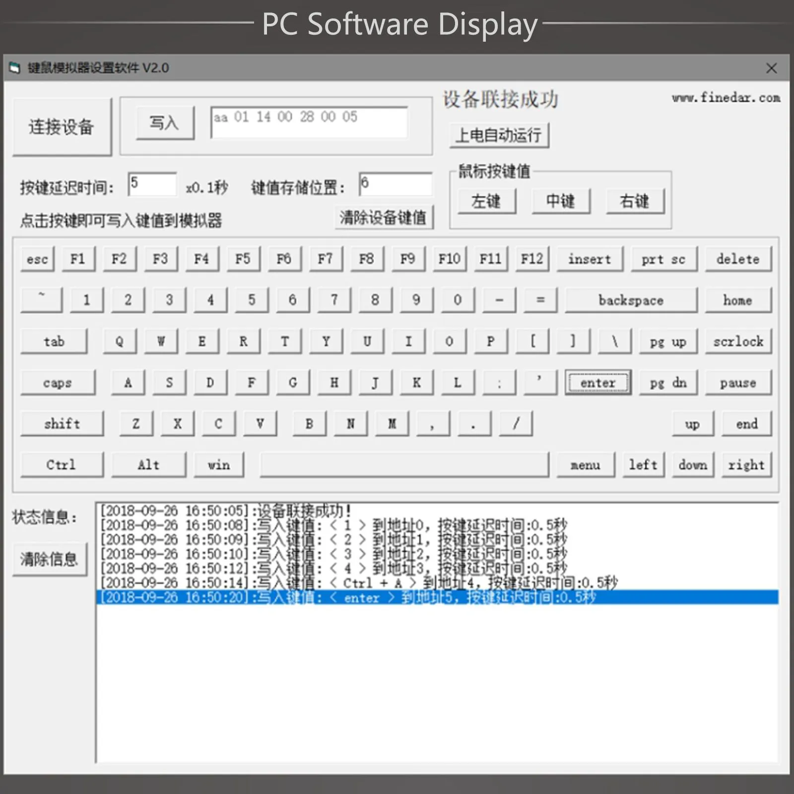 さらに、ここにある PC 画面の設定プログラム画像 の右上の「www.finedar.com」から、 製造元の WEB サイト にたどり着くことができて、 この製品の紹介区画下方にあるアプリケーションプログラム入手のためのリンク を見付けることができます。試しに Windows マシンで動かしてみると、中国語でしか 表示されませんでした。